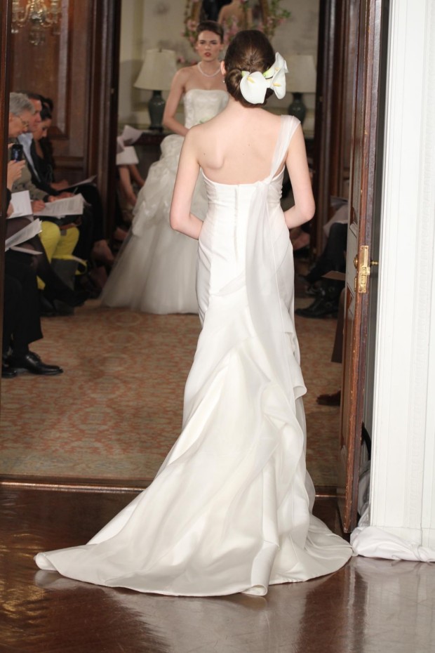 This one-shouldered, draped gown has me dreaming of a decadent forties style wedding.